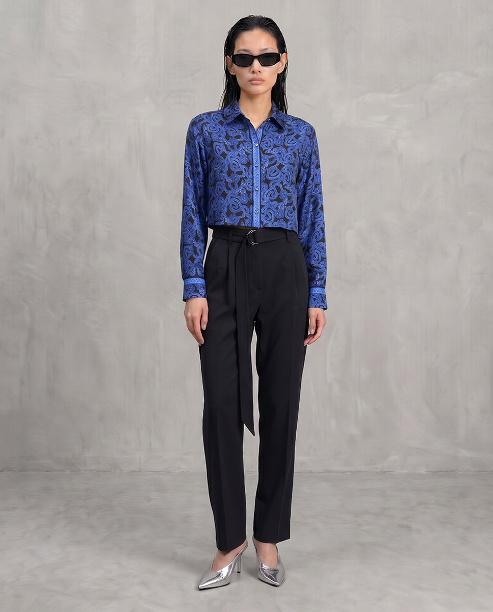 Serpent Noir Cropped Silk Shirt - Made to Order - Electric Blue